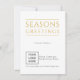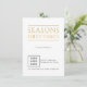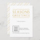 Envie este cartão de feriado comercial moderno aos seus clientes e parceiros comerciais. Apresentando o texto Sasons Saudações em ouro. O resto do texto está preto. A placa tem um fundo branco. Você pode atualizar o texto: ~ dos seus amigos em ~. Atualize um texto de espaço reservado com seu nome de empresa ou de empresa e outro com seu slogan ou linha de etiqueta da empresa e/ou informações de contato da empresa, como número de telefone, endereço de e-mail e/ou mídia social. Carregue seu próprio logotipo.