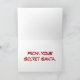 Secret Santa, with a curly S, topped with a fluffy Santa hat and backed with a dark blue Christmas Eve night that is filled with falling snowflakes. This is a great gift for the gift giver in your house or office.