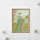 Cartão vintage do dia dos namorados de uma mulher colhendo flores com vestido medieval. Ilustrado por Kate Greenaway e Walter Crane.