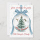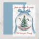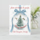 Celebrate the holiday season with this beautifully designed personalized Christmas card, featuring a serene winter scene adorned with delicate hummingbirds and a snow-covered tree. The elegant blue ribbon and snowflake accents create a warm and inviting feel, perfect for sending heartfelt wishes from your family to theirs. Customize with your family name for a unique touch. Order today to add a festive touch. Pair with matching pieces.