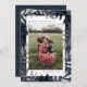 Um cartão fotográfico elegante, com galhos de pinheiro desenhados à mão, numa folha de cor prata e azul marinho festiva desenhada por Stacey Meacham. O backside oferece outra oportunidade para fotos adicionais de clientes e mensagens de feriados incríveis para amigos e familiares.