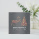 Silver greeting card wishing a HAPPY HOLIDAYS & JOYFUL NEW YEAR written in English in white font with a Christmas tree and a reindeer in red and yellow with stars and Christmas balls - editable text and background