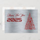 Cartão De Festividades Silver wish card New Year with christmas tree