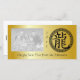 Celebre o Ano do Dragão com este design atraente que apresenta o símbolo chinês (ou kanji japonês) para o dragão rodeado por uma armação redonda no estilo oriental do ornamentado sobre um fundo colorido do ouro. Coloque sua foto de família para criar um cartão com fotos de saudações de Ano Novo chinês giro.