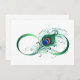 O símbolo do infinito com uma pena brilhante, verde, de pavão artístico sobre um fundo branco. Tatuagem.