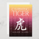 Celebre o ano novo chinês com este convite/cartão simples e elegante, que apresenta a forma das letras chinesas para o Tigre, o terceiro signo/animal no zodíaco oriental, e saudações tradicionais chinesas de celebração, renderizadas em um fundo gradiente de dourado a vermelho.