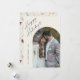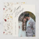 Cartão de Boas Festas Simple Script Boho Arco Feliz. O verso tem um padrão de flores silvestres. Clique no botão personalizar para personalizar este design com seus detalhes.