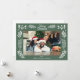 Your horizontal or landscape oriented photo is framed by an assortment of winter greenery and foliage. The snow white botanical accents are set against a sage green background. There's a spot to add your own custom greeting at the top, your own from message below the photo and your own longer message on the reverse side.