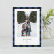 Envie cartões de natal com estes cartões de Natal fotográficos, mostrando seu conjunto de fotos favorito contra um padrão de xadrez azul e preto desenhado à mão. Personalize sua mensagem de feriado com um estilo moderno de inscrição na área de texto editável e adicione seu(s) nome(s) de família abaixo. A parte traseira do cartão fornece espaço para uma foto adicional e uma mensagem de feriado personalizada