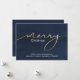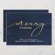 Fundo de cor azul-d-água clássico e elegante marinho com efeito ouro com texto de script de rico "feliz" Natal. Saudações à sua família e amigos com classe e sofisticação nesta temporada de férias com este cartão de saudação de na moda. Design Copyright © CustomChristmasPhotoCards.com