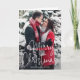 Mande o festival de animação com este cartão de Natal dobrado moderno com um simples design com as palavras "Feliz Natal" em um elegante e fino roteiro branco, juntamente com o seu nome de família sobre a sua foto vertical favorita. Adicione sua mensagem pessoal ao dentro ou exclua o texto se quiser escrever sua mensagem manualmente.