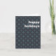 Este cartão de férias dobrado em branco apresenta uma saudação editável em um padrão geométrico moderno de meados do século retro em azul marinho.