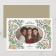 Este design, Quadro de Natal Clássico com Sininhos e Folhagens, é um cartão de Natal atemporal que combina elegância e calor. Com folhagens ilustradas à mão, frutos vermelhos, sininhos dourados e ornamentos delicados, o quadro destaca lindamente a sua foto de família no centro oval. A paleta sutil de verdes, vermelhos e dourados captura o espírito festivo, mantendo o design sofisticado e moderno.