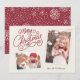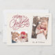 O cartão com fotos festivo apresenta duas fotos no estilo de um retrato, com "Feliz Natal" em um roteiro vermelho embelezado. Personalize com sua assinatura familiar e o ano.