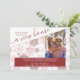 Cartão de anúncio móvel de feriado com foto vertical, seu novo endereço e saudação personalizada. Design de floco de neve vermelho e rosa com roteiro elegante e escrito com "tem lugar de neve como uma nova casa... seguido pelo seu texto personalizado. Simples design elegante e elegante, com palavras festivas divertidas para que todos saibam seu novo endereço. Se tiver algum problema com o posicionamento da imagem, tente recortar para o formato vertical do retrato antes de carregar.