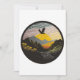 A sticker with an eagle flying over a mountain, in the style of contemporary landscape, golden light, black mountain college, fisheye lens, arts and crafts movement, mid-century illustration