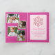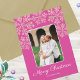 Crie seus próprios cartões de natal personalizados com este design de cartão de Natal dobrado com floco de neve rosa 5. O cor-de-rosa está na tendência do Natal e este elegante design com falso falso falso floco de neve brilhando abraça a experiência rosa enquanto mostra suas 5 fotos familiares favoritas. A frente desses cartões de Natal personalizados apresenta uma foto enquadrada com uma fina borda branca, Feliz Natal em uma letra de script e seu nome embaixo também em branco e uma colagem de flocos de neve cor-de-rosa na parte superior do rico fundo rosa de bagas profundas. Dentro há quatro modelos de fotos à esquerda para você incluir suas fotos enquanto o lado direito tem espaço para sua mensagem de feriado personalizada e seus nomes. Totalmente personalizável, esses cartões de saudação fotográficos cheios de flocos de neve rosa e rosa-framboesa escuros estão prontos para você fazer deles seus e enviar saudações personalizadas de Feliz Natal para amigos e familiares este ano.