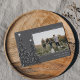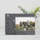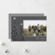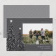 Um design de cartão de Natal moderno e elegante, com uma fotografia horizontal sobre uma cinza de carvão enfeitado com pinheiros carregados de neve e revestidos de estrelas brancas. Personalize com seu cartões de natal personalizado, seu nome de família e o ano.