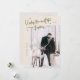 Cartão de feriado mínimo e caprichoso para os recém-casados celebrando seu primeiro Natal juntos como marido e mulher apresentando um texto que diz "Sob o Mistério para sempre" em cima de sua foto com um canto curvo. O fundo é creme.