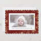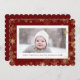 Enviar cartões de natal personalizáveis e personalizados a amigos, colegas e familiares em cartões com fotos simples, minimalistas, elegantes, divertidos, festivos e modernos! Um belo quadro de variedade de flocos de neve de inverno dourados em fundo vermelho de marrom rodeia sua foto em papel de borda redonda. A saudação personalizada de 'Feliz Natal' e o seu nome familiar aparecem na tipografia moderna. Inverso para revelar um belo floco de neve de inverno de ouro de cheio sobre fundo vermelho de marrom.