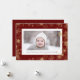 Enviar cartões de natal personalizáveis e personalizados a amigos, colegas e familiares em cartões com fotos simples, minimalistas, elegantes, divertidos, festivos e modernos! Um belo quadro de variedade de flocos de neve de inverno dourados em fundo vermelho de marrom rodeia sua foto. A saudação personalizada de 'Feliz Natal' e o seu nome familiar aparecem na tipografia moderna. Inverso para revelar um belo floco de neve de inverno de ouro de cheio sobre fundo vermelho de marrom.