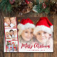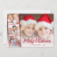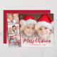 Cartão de cartões de natal moderno com a sua foto, sobreposta com uma fita de três fotos quadradas, "Feliz Natal" em um roteiro vermelho festivo e seu nome e o ano em simples letras vermelhas.