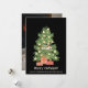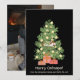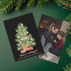O engraçado gato dormindo no Natal! Cartão de Natal Preto com Gato na Árvore de Natal é a mistura perfeita de charme festivo e humor felino. Ele mostra um gato laranja aconchegado dormindo no topo de uma árvore de Natal decorada, completa com bolas amarelas e dois presentes embrulhados embaixo. Abaixo da ilustração divertida, a frase "Feliz soneca de gato!" aparece em letras creme sobre um fundo preto elegante, com uma linha personalizável para adicionar o nome da sua família e o nome do seu gato. O verso do cartão oferece espaço para uma foto da família ou do animal de estimação, tornando-o um cumprimento de Natal caloroso, espirituoso e pessoal para os amantes de gatos.