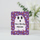 A cute hand drawn illustration of festive blend of ghosts and pumpkins on a vibrant purple background, evoking a playful Halloween spirit.