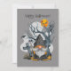 Celebrar o Halloween com este cartão de saudação assustador, mas adorável, com um gnomo de Halloween em frente a um cemitério assombrado. O gnomo, com sua barba longa icônica e chapéu pontiagudo, segura um funcionarios coberto por um crânio, adicionando à atmosfera estranha. Um corvo pisca numa lápide enquanto uma lua laranja brilhante com morcegos voadores acende o fundo, criando a cena noturna perfeita do Halloween. A mensagem "Feliz Dia das Bruxas!" está impressa no topo de uma fonte caprichosa, fazer este cartão, charmoso e festivo.Este cartão é perfeito para enviar desejos de Dia das Bruxas a amigos e familiares, ou mesmo como peça decorativa para melhorar sua decoração de feriados. O impressão de alta qualidade no estoque de cartão resistente garante que sua mensagem seja entregue com estilo. Quer você esteja dando a alguém amado ou guardando para você mesmo, este cartão de gnomo do Dia das Bruxas certamente trará um sorriso para qualquer um que o receba.