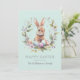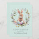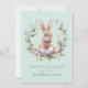 Send Easter wishes in style with this Personalized Spring Bunny Easter Eggs Wreath Card. Featuring a charming watercolor bunny nestled in a seasonal wreath of pastel eggs, florals, and greenery, against a subtle mint aqua background, this beautifully designed card captures the spirit of springtime celebrations.