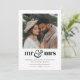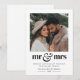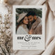 Este cartão de Natal é projetado para recém-casados que celebram seu primeiro Natal casados, misturando simplicidade moderna com charme sazonal. Ele apresenta uma foto quadrada que você pode carregar para mostrar seu momento favorito juntos. A frase "sr & sra" em um design tipográfico ousado é acompanhada por um delicado coração ao lado. Abaixo dela, seus votos de Natal personalizados são exibidos de forma elegante em duas fontes complementares, ao lado do ano na parte inferior, criando um presente atemporal.