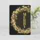 Círculos Dourados, estrelas e pontos sobre um fundo preto rodeiam a palavra "FELIZ" na frente e seus nomes e saudações nas costas. Selecione Matte para o papel mais pesado e alta definição para melhor qualidade de impressão.