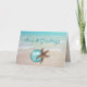 Os mares e saudações tropicais de Natal com saudações e dentro de mensagens personalizadas. As cartas dobradas vêm em três tamanhos e têm um ornamento de estrelas e árvores na frente sobre uma cena tropical de água do mar e areia da praia turquesa. Também adicione uma assinatura. O texto na frente pode ser mudado para "Feliz Natal" ou "Feliz Natal".