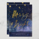 Cartão De Festividades Starry Winter Night Feliz e Bright Blue e Dourado