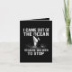 Funny "I came out of the ocean to tell you to stop with shark" design. Perfect for shark lovers, surfers, and beachgoers who appreciate sarcastic marine humor. Great gift for Shark Week, marine biologists, or anyone who loves a clever ocean-themed pun.