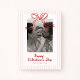 A charming Valentine’s Day photo card featuring soft blush stripes and a playful hand-drawn red bow above your picture. The clean layout and sweet, whimsical details make it perfect for sharing a favorite family photo, kids’ snapshot, or couple’s moment in a warm and festive way. Simple, cheerful, and easy to personalize for anyone you love.