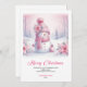 Celebrate the season with this cute watercolor pink coquette snowman kids Christmas card, set in a magical snowy forest. Editable text lets you personalize instantly, and the digital download provides an easy, fast, and festive holiday greeting.