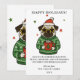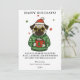 Envie um pacote de alegria natalina e travessuras adoráveis com este hilário cartão de Natal de Pug! O design apresenta uma ilustração encantadora de um Pug vestindo uma suéter feia de Natal festiva e óculos de sol em forma de estrela, desfrutando de uma caneca aconchegante de chocolate quente coberto com marshmallows. Este cartão é engraçado, caprichoso e totalmente único, tornando-o ideal para donos de Pugs e famílias que amam cães que desejam um cumprimento memorável, humoroso e aconchegante para desejar um Feliz Natal!