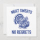 Engraçado "Suor de Carne Sem Arrependimentos" é um design de Ação de Graças totalmente azul com uma fonte simples de grunge sem serifa e uma ilustração vintage de um peru vivo. Este design simples, porém atraente, do Dia de Ação de Graças, é um ótimo presente para o amante de peru em sua vida.