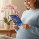 The inside shares a beautiful sentiment: "To the one who brings the magic of spring to our lives every day." On the back, a charming symbolic scene of a mother and her baby in a stroller reminds us of the beauty of home and family. Whether she is a new mom or a seasoned matriarch, this card celebrates the warmth she brings to her world.