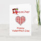 Valentine's Day card for teacher with cute frog and red plaid heart.