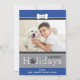 Envie um sorriso nesta temporada de festas com um cartão de saudação de fotos de natal com o tema de um filhote de cachorrinho, completo com sotaques de design de impressão de osso e pata. Design moderno com um fundo com bolinhas e cores azuis e cinzas.