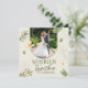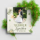 Este belo e festivo cartão de Natal com uma foto personalizada é perfeito para enviar seus mais calorosos votos a amigos e familiares. O cartão apresenta um design de folhas verdes e flores amarelas em um fundo, criando um visual sofisticado e elegante. As palavras "Mais Alegre Juntas" são escritas em uma fonte alegre, adicionando um toque de alegria ao cartão.