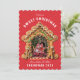 Este Cartões de foto de Natal divertido apresenta um doce gerado por IA coberto por um quadro fotográfico Gingerbird que é perfeito para destacar sua foto favorita de feriado. Há um fundo listrado vermelho-em-vermelho. Há um tipo curvo que diz "Tenha um bom Natal" no topo. Abaixo da foto está um lugar para personalizar com nomes e um ano.