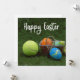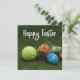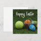 Cartão De Festividades Tênis Feliz Páscoa com bola e ovos no verde