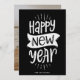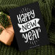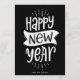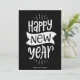 Cartão de Feriado com letra branca de texto do script do feliz ano novo