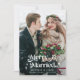 Dois cartões com fotos verticais retrorreflectores e minimalistas (1 horizontal e 1 quadrado) para os recém-casados celebrando seu primeiro Natal juntos como marido e mulher apresentando um texto com estrelas que diz "Feliz e casado". O texto está posicionado em cima da sua foto.