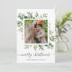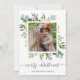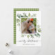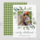 Este Natal de texto personalizado moderno | cartão com fotos de férias pintado de aquarela eucalipto, folhas verdes e impressão de xadrez de inverno verde no verso. Mande alegria de férias para sua família e amigos.