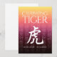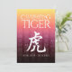 Celebre o ano novo chinês com este convite/cartão simples e elegante, que apresenta a forma das letras chinesas para o Tigre, o terceiro signo/animal no zodíaco oriental, e saudações tradicionais chinesas de celebração, renderizadas em um fundo gradiente de dourado a vermelho.