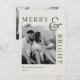Cartões clássicos modernos de fotos de dois lados da família, cartões de Natal com "feliz e brilhante", design de tipografia ousada, com fotos personalizadas da família e mensagens de feriado.